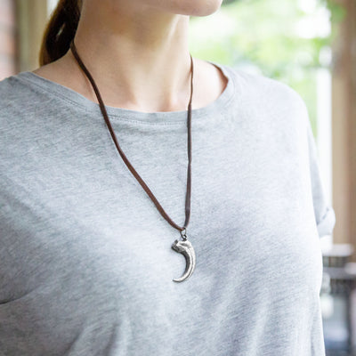Come il Collana con artigli di Velociraptor di Jurassic Park hanno anche dei pericolosi artigli, possono aprire le porte e sono intelligenti in tutto e per tutto. Con questa collana puoi dimostrare di essere sopravvissuto a un incontro con gli agili dinosauri predatori o di aver visitato il negozio di souvenir di Jurassic Park. Oltre al ciondolo, la collana è composta da un laccetto in ecopelle con chiusura lunga circa 55 cm.