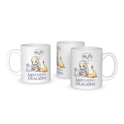 L'impavida regina, che cavalca il "Tazza "Madre dei Draghi dovrà aspettare ancora qualche anno prima che i suoi tre draghi siano abbastanza grandi da combattere per lei. Aspetta un attimo: tre draghi? Ok, è vero che l'idea di come dovrebbe essere un drago varia da cultura a cultura. Ad esempio, il drago blu ricorda più da vicino un drago dell'Estremo Oriente, mentre la lucertola arancione assomiglia a un drago europeo. Ma cosa ci fa il pesce nella vasca dei pesci rossi? Beh, la leggenda narra che questa inutile creatura squamosa si trasformerà in un potente serpente d'acqua se lo accudisci con cura e gli fai fare esperienza. In ogni caso, incrociamo le dita per la regina e speriamo che il suo illustre trio di draghi più o meno grandi la aiuti a cacciare gli usurpatori dal trono.