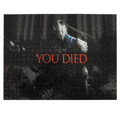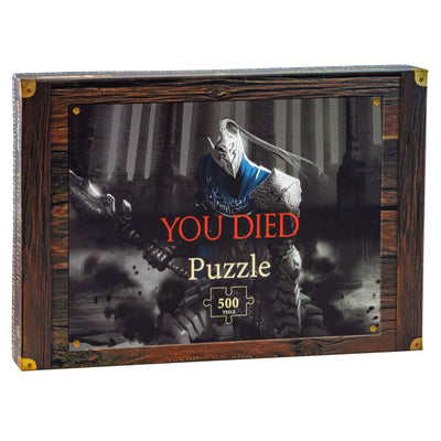 Il Puzzle "Sei morto" rappresenterà una grande sfida sia per i veterani del gioco che per le persone non traumatizzate. Prima di poter vedere il famigerato cavaliere con il braccio paralizzato del gioco, dovrai prima mettere insieme correttamente i 500 pezzi. E credici, non è così facile. E attenzione: Il bordo della confezione rivela che la scatola è un falso. Quindi giù le mani!)