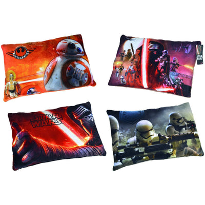 Questo cuscino con licenza ufficiale set di cuscini di Star Warscomposto da 4 morbidi e decorativi cuscini, presenta vari motivi tratti dall'universo di Star Wars in nove parti: Kylo Ren con elmo, spada laser e braccio teso, i droidi R2-D2 e C-3PO insieme a un BB-8 che sfreccia in primo piano, gli Storm Troopers nel bel mezzo della battaglia e un coloratissimo cuscino stampato con tutti i personaggi centrali degli Episodi VII, VIII e IX. Tutti i disegni sono dettagliati e colorati, dalle scintille della spada laser di Kylo Ren ai dettagli del design di BB-8. Questi comodi cuscini sono perfetti sia come decorazione nerd per i fan che per rendere più accogliente il cinema di casa.