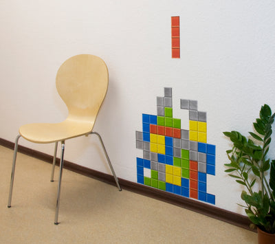 Gli adesivi murali di Tetris aderiscono al meglio alle superfici più lisce possibili, ma anche alla carta da parati in legno. Possono essere rimossi dalla maggior parte dei materiali senza lasciare residui.