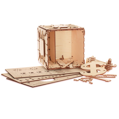 Prima di poter tenere tra le mani una cassaforte perfettamente funzionante, con tanto di serratura a combinazione, dovrai ovviamente assemblarla. Per l'assemblaggio non sono necessari strumenti o colla: le parti tagliate al laser vengono semplicemente rimosse dal pannello. Tuttavia, per assicurarti che gli ingranaggi si muovano senza intoppi, dovresti avere a portata di mano una lima o un piccolo pezzo di carta vetrata e un po' di cera (ad esempio quella di un accendino) per lubrificare il meccanismo.