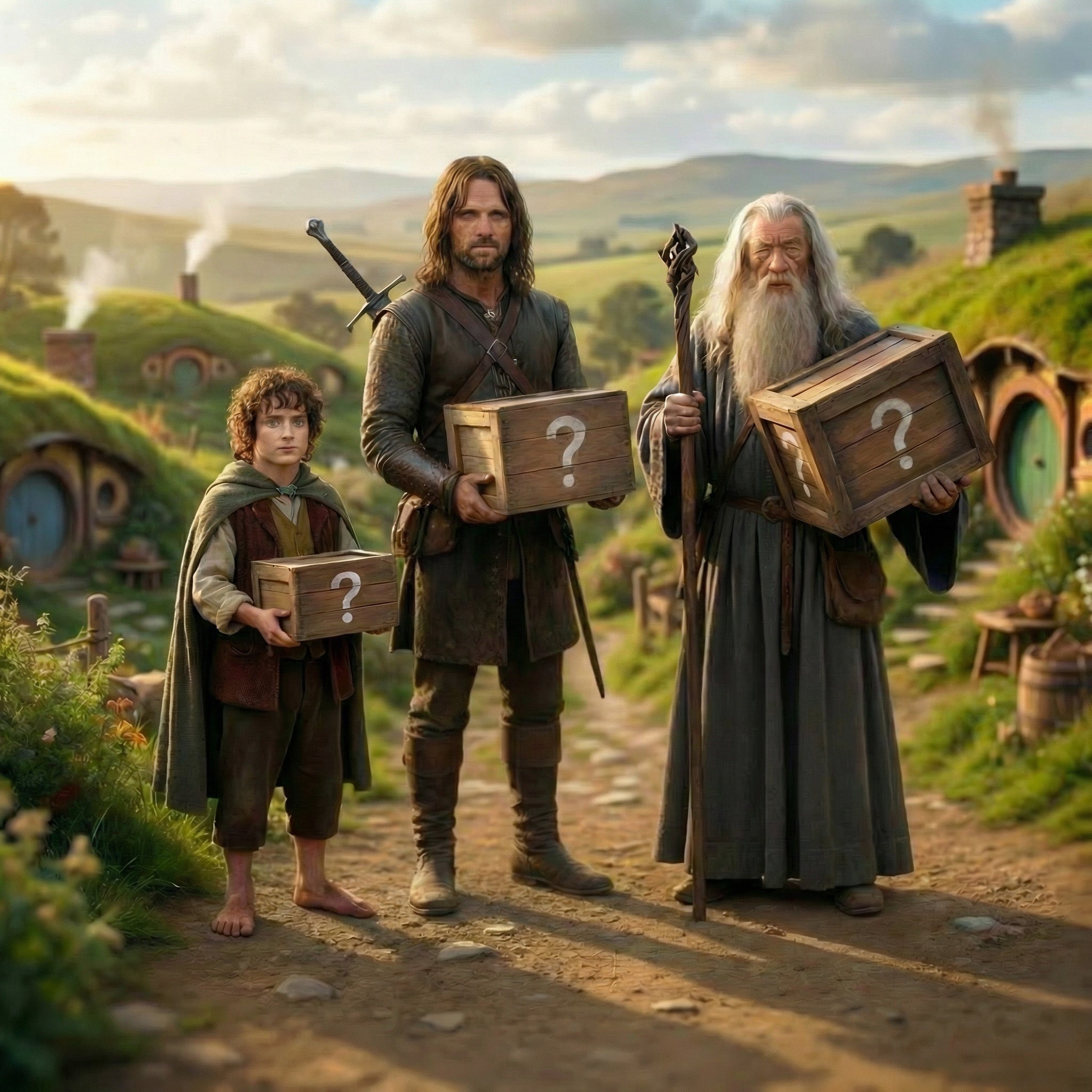 Überraschungsboxen in 3 Leveln zu Der Herr der Ringe. Jedes Level bringt dir mehr cooles Mittelerde-Merch.