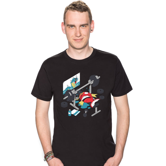 Questa maglietta, che raffigura Karpador in palestra, dovrebbe servire da motivazione per tutti coloro che sanno di essere destinati alla grandezza. Che questo significhi diventare il miglior allenatore di Pokémon del mondo o avere un fisico da urlo, dipende da te. Perché se anche il più "inutile" dei Pokémon diventa Garados, anche tu puoi raggiungere i tuoi obiettivi!