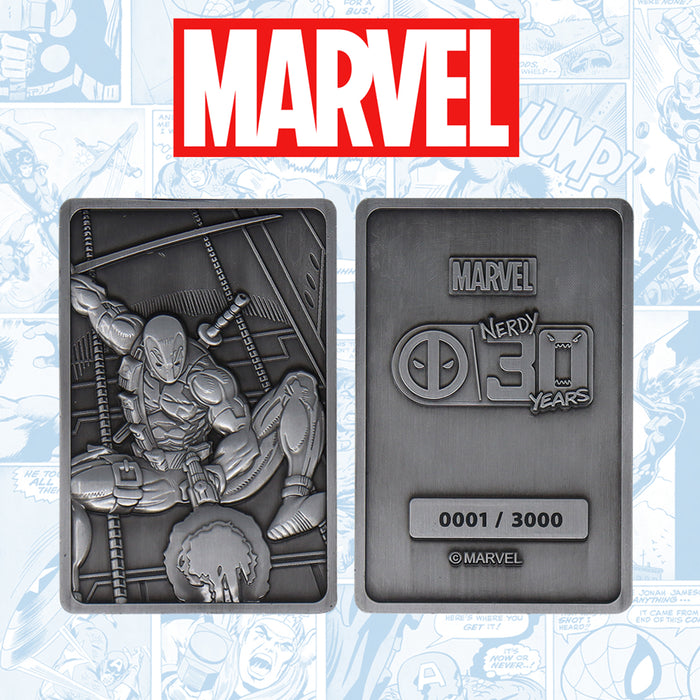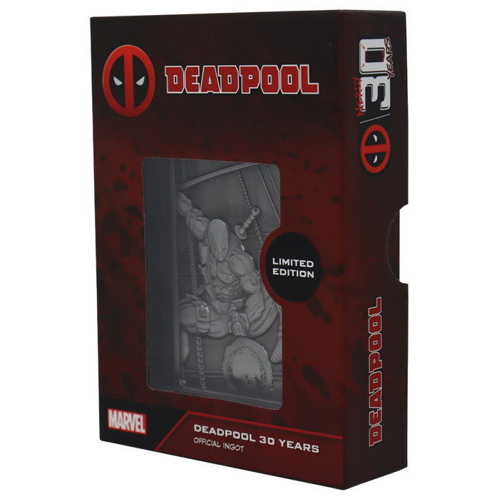 Trotzdem ist es erholsam, wenn Deadpool einfach mal Ruhe gibt. Dafür muss man ihm gar nicht den Mund zunähen, sondern es reicht, ihn in Metall zu gießen. Na, wenn dieses Sammlerstück dadurch nicht noch im Wert steigt! Aber auch so ist es etwas ganz Besonderes, denn von den Marvel Deadpool Anniversary Ingots gibt es weltweit nur 3.000 Stück.